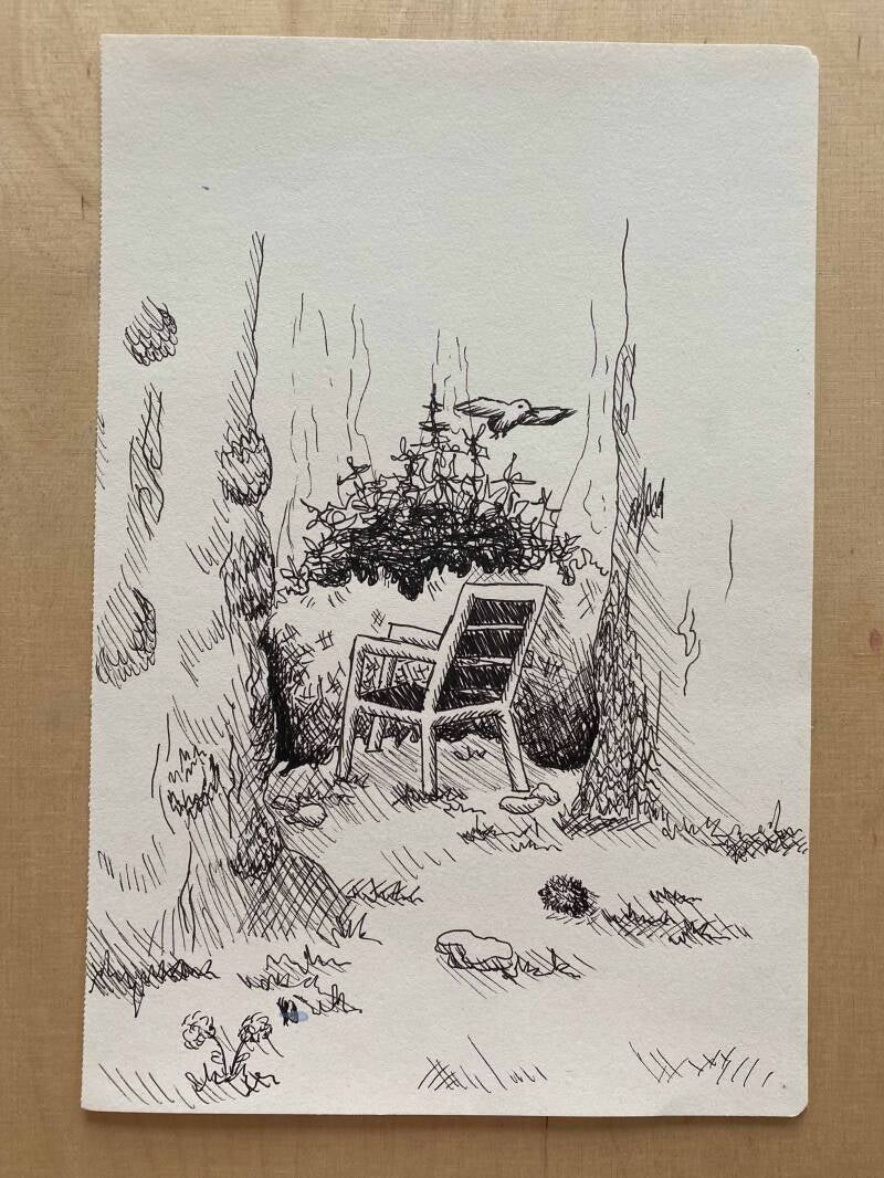 Tekenen naar waarneming. Grove schets omgezet in een beeldend verhaal. Deze illustratie heb ik digitaal uitgewerkt en gebruik gemaakt van Procreate.
